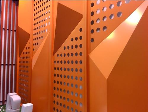 與常規(guī)鋁單板相比,沖孔鋁單板的特征就是表面形狀各異的沖孔(包括圓孔、方孔、五角星、六邊形孔等),裝飾效果突出,也能夠在一定程度上起到降低噪音的作用。集裝飾性與實用性于一體,沖孔鋁單板在工程裝飾中使用的越來越多。