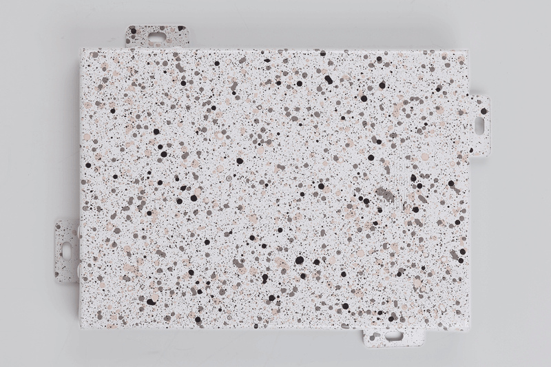 仿石紋氟碳鋁單板的主要特征是鋁單板表面逼真的石紋色,裝飾效果喜人,且質量輕、安裝方便,幾乎可以替代大理石這種幕墻材料。它主要通過熱轉印等工藝,把石紋色轉印到鋁板表面,然后再噴上氟碳罩光漆,經(jīng)過多次噴涂和烘烤,終客戶定制的石紋效果。